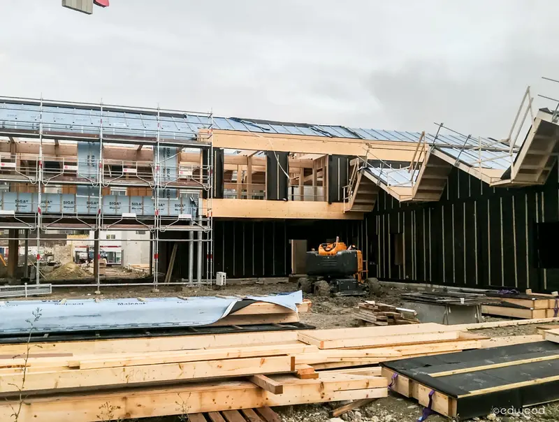 Structure poteaux poutres, murs et caissons de toiture ossature bois