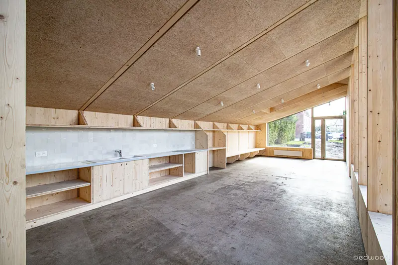 La ventilation naturelle est assurée par des ouvrants aux extrémités du bâtiment. Une petite ventilation mécanique est imposée pour les sanitaires et la cuisine.
